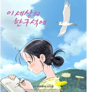‘이 세상의 한 구석에’는 제2차 세계대전 당시 원자폭탄의 잔임함과 무서움이 만천하에 드러난 일본 히로시마에서 벌어진 일들을 그린 만화영화다. 이 영화는 만화 출판사인 후타바샤 ‘만화액션’에서 2007년 1월호부터 2009년 1월호까지 연재한 만화를 원작으로 한다. 원작자는 코우노 후미요다.